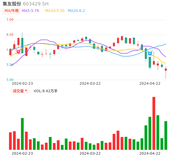 集友股份牛熊点指标分析报告-20240422