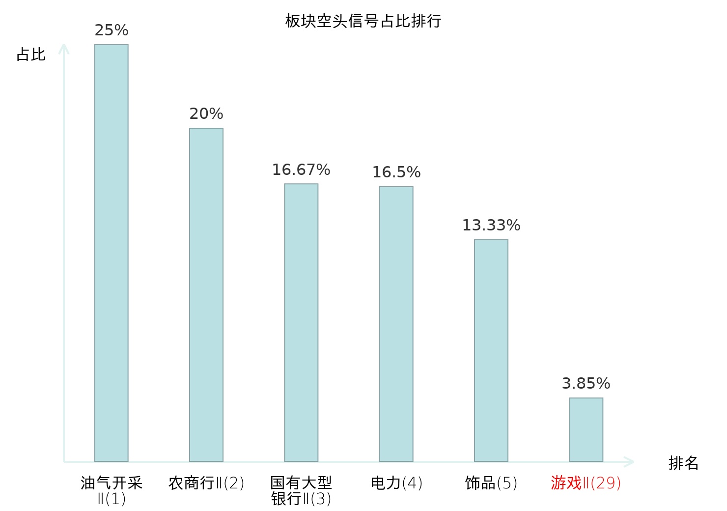 全市场所有行业板块中主力空头信号占比排名中,油气开采Ⅱ板块位居第一。医药商业板块名次提升最快,较昨日上升109位。