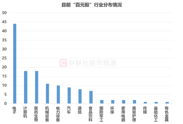 注:目前“百元股”行业分布情况(截至9月10日收盘)