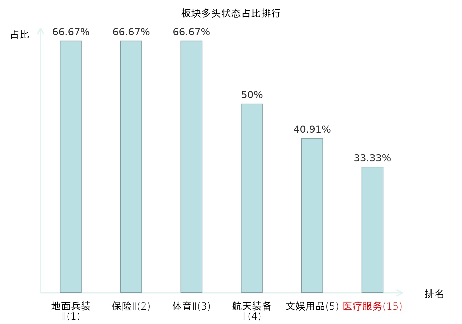 全市场所有行业板块中主力多头状态占比排名中,地面兵装Ⅱ板块位居第一。专业连锁Ⅱ板块名次提升最快,较昨日上升102位。