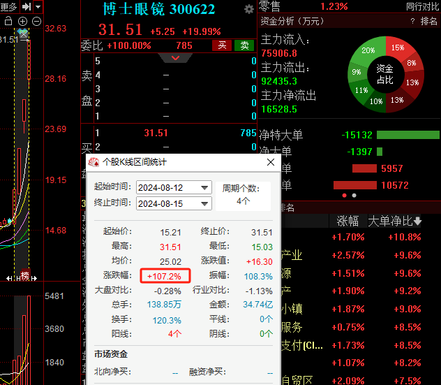 个股方面,短线情绪继续修复,博士眼镜20CM3连板打出良好赚钱效应,20CM个股表现活跃,48只涨停股中有14只20CM个股,此外还有11只20CM个股涨超10%。