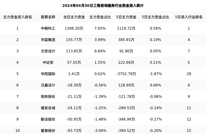 从主力资金流向来看,工程咨询服务行业今日主力资金流入17.76亿元,在所有申万二级行业中排名:120/131。