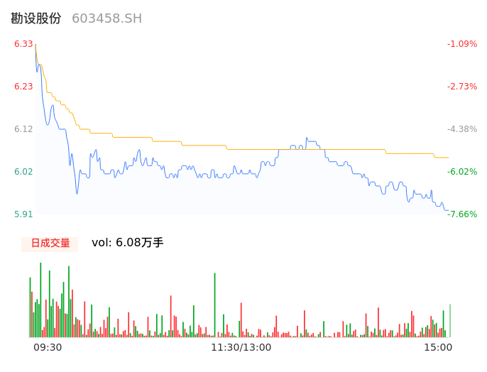 04月16日,勘设股份收报5.91,股价涨幅-7.66%,成交金额3676.07万元,换手率1.95%。