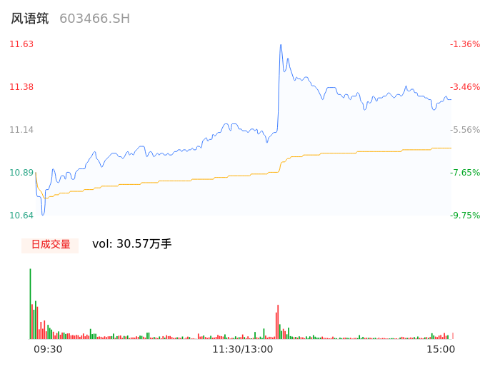 04月26日,风语筑收报11.31,股价涨幅-4.07%,成交金额3.37亿元,换手率5.14%。