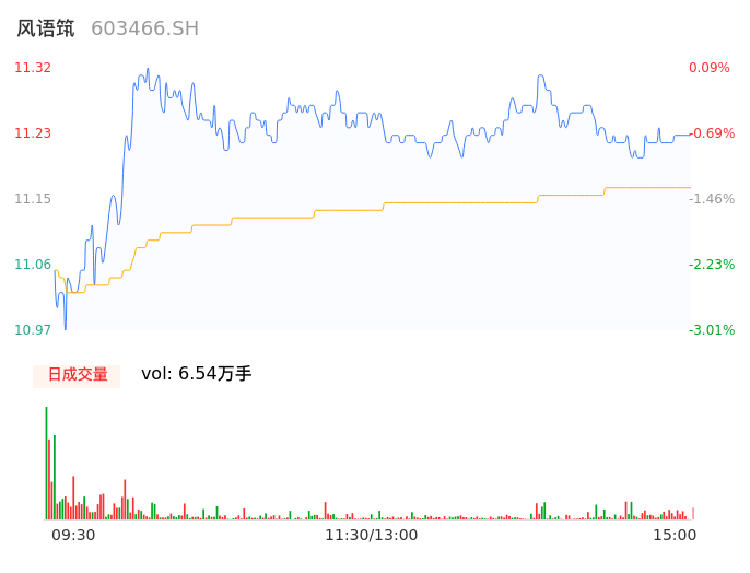 04月22日,风语筑收报11.23,股价涨幅-0.71%,成交金额7297.34万元,换手率1.10%。