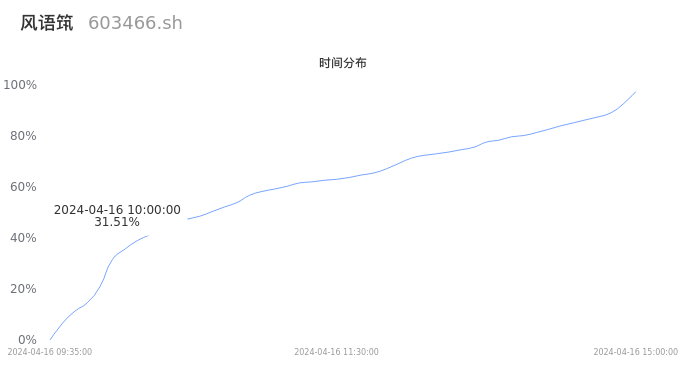603466风语筑2024年04月16日成交12.35万手,成交金额1.37亿元,相较昨日放量1.43万手,换手率2.08%,成交清淡。