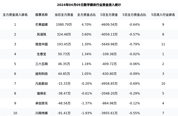 从主力资金流向来看,数字媒体行业今日主力资金流入3.47亿元,在所有申万二级行业中排名:68/131。