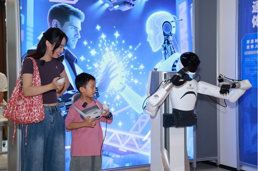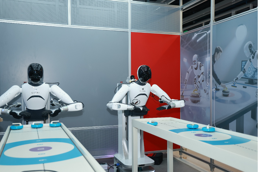 在体验中心,记者看到消费者可体验机器人运动极限,拳击擂台、棋牌对弈、冰壶竞技等互动项目。