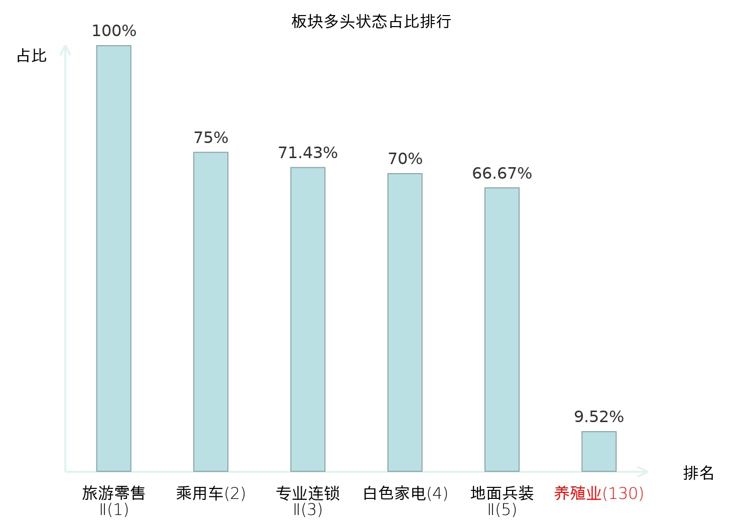 全市场所有行业板块中主力多头状态占比排名中,旅游零售Ⅱ板块位居第一。焦炭Ⅱ板块名次提升最快,较昨日上升105位。