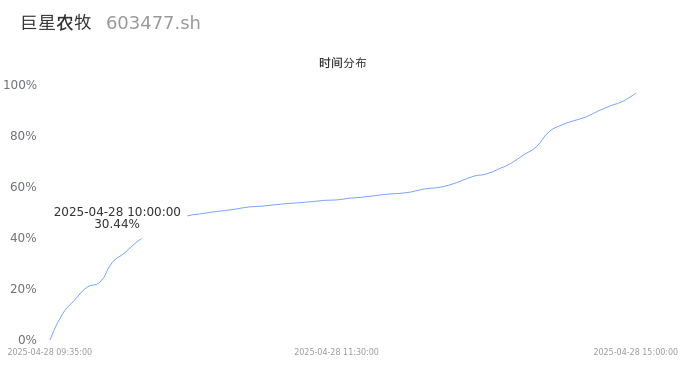 603477巨星农牧2025年04月28日成交20.78万手,成交金额4.28亿,相较昨日放量6.39万手,换手率4.07%,成交清淡。
