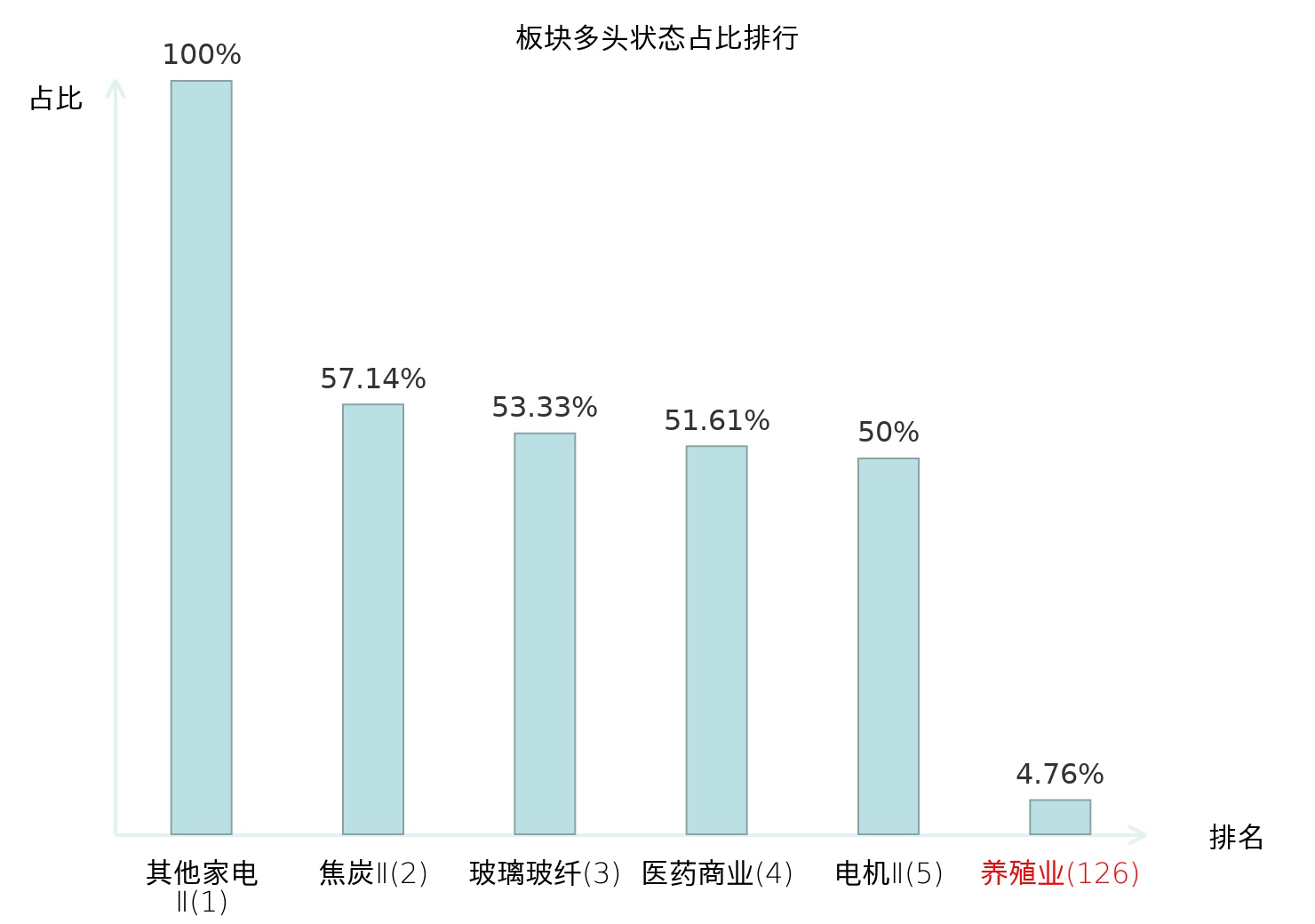 全市场所有行业板块中主力多头状态占比排名中,其他家电Ⅱ板块位居第一。白色家电板块名次提升最快,较昨日上升67位。