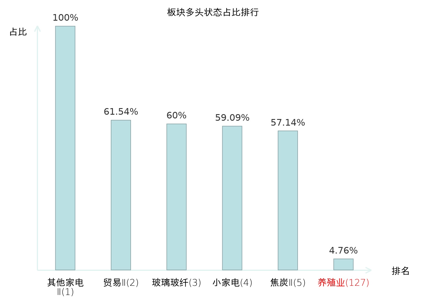 全市场所有行业板块中主力多头状态占比排名中,其他家电Ⅱ板块位居第一。摩托车及其他板块名次提升最快,较昨日上升76位。