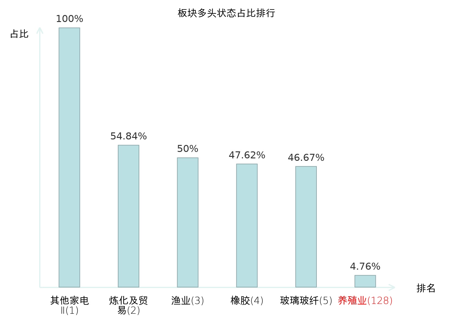 全市场所有行业板块中主力多头状态占比排名中,其他家电Ⅱ板块位居第一。铁路公路板块名次提升最快,较昨日上升37位。
