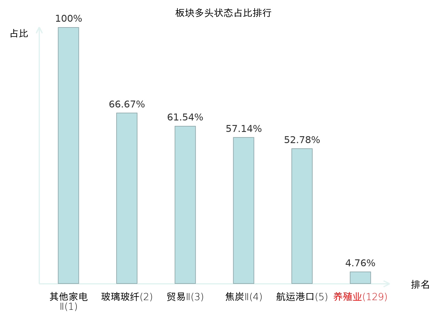 全市场所有行业板块中主力多头状态占比排名中,其他家电Ⅱ板块位居第一。影视院线板块名次提升最快,较昨日上升62位。