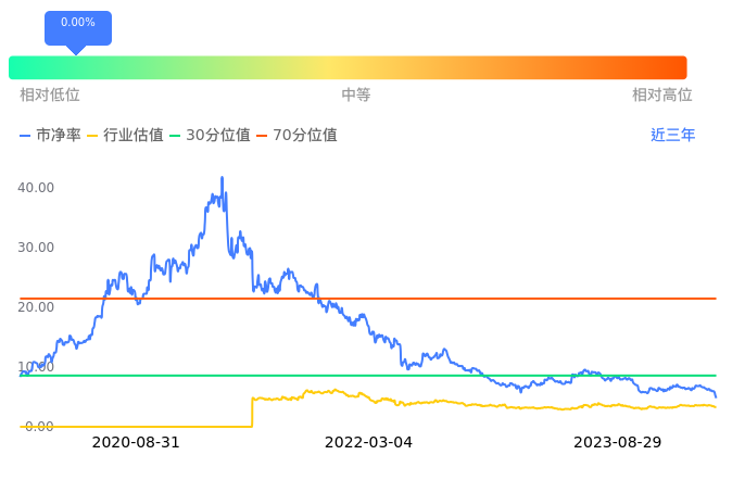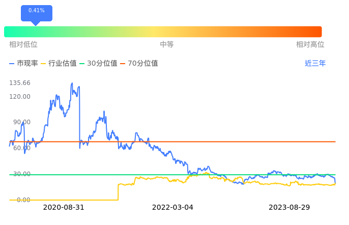 2023年08月30日,科沃斯下跌0.78%收于54.54,今日成交金额6.64亿元。下文将从市盈率PETTM、市净率PB、市现率3个角度去分析公司估值情况。