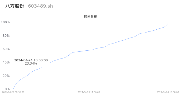 603489八方股份2024年04月24日成交9283手,成交金额3138.89万元,相较昨日缩量4537手,换手率0.55%,成交清淡。