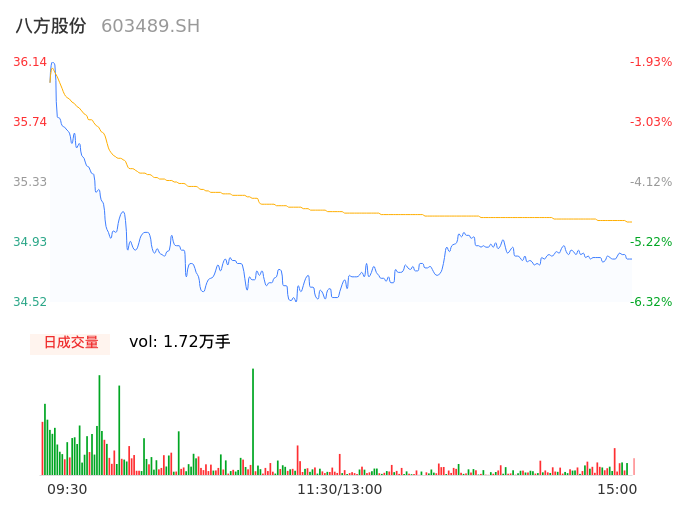 04月30日,八方股份收报34.82,股价涨幅-5.51%,成交金额6022.84万元,换手率1.02%。