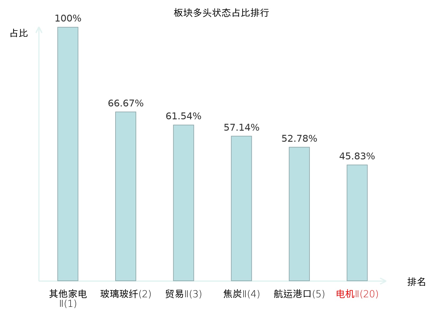 全市场所有行业板块中主力多头状态占比排名中,其他家电Ⅱ板块位居第一。影视院线板块名次提升最快,较昨日上升62位。