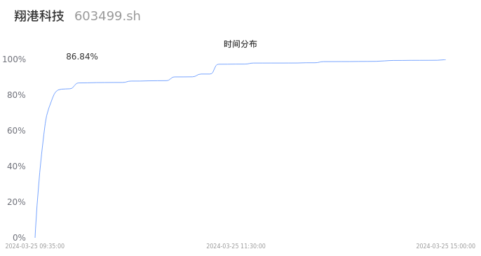 根据成交分布分析,该股票当天缩量成交,成交清淡。时间上看,早盘前半小时成交量占据当天总成交量的86.84%;价格上看,成交呈现一字涨停。成交分布分析主要研究股票成交的分布特性,不具有预测功能,请知悉。