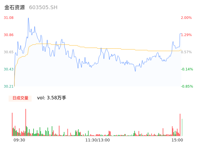 04月19日,金石资源收报30.82,股价涨幅1.15%,成交金额1.10亿元,换手率0.59%。