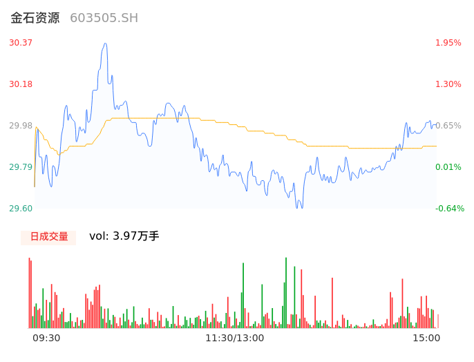04月24日,金石资源收报30.00,股价涨幅0.70%,成交金额1.19亿元,换手率0.66%。