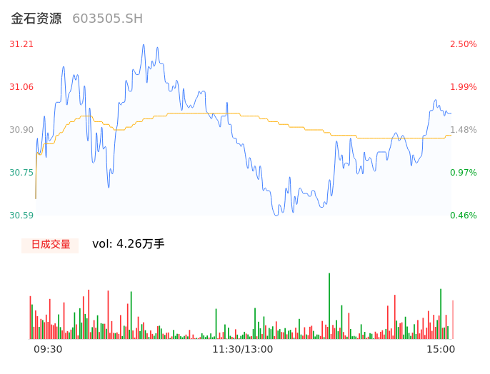 04月17日,金石资源收报30.96,股价涨幅1.67%,成交金额1.32亿元,换手率0.70%。