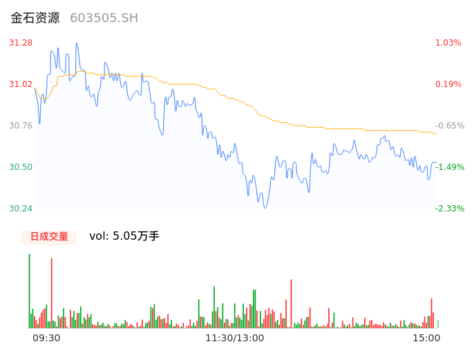 04月18日,金石资源收报30.47,股价涨幅-1.58%,成交金额1.55亿元,换手率0.84%。