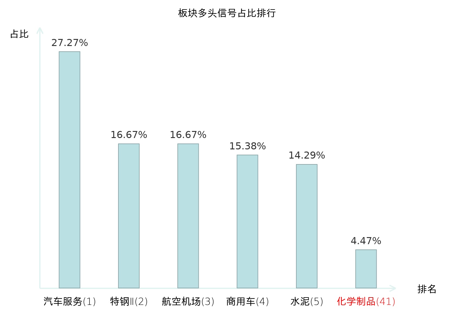 全市场所有行业板块中主力多头信号占比排名中,汽车服务板块位居第一。汽车服务板块名次提升最快,较昨日上升112位。