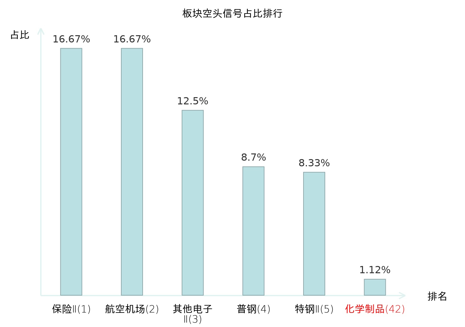 全市场所有行业板块中主力空头信号占比排名中,保险Ⅱ板块位居第一。基础建设板块名次提升最快,较昨日上升108位。