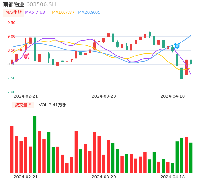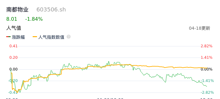 04月18日,南都物业收报8.01,股价涨幅-1.84%,成交金额2752.37万元,换手率1.81%。