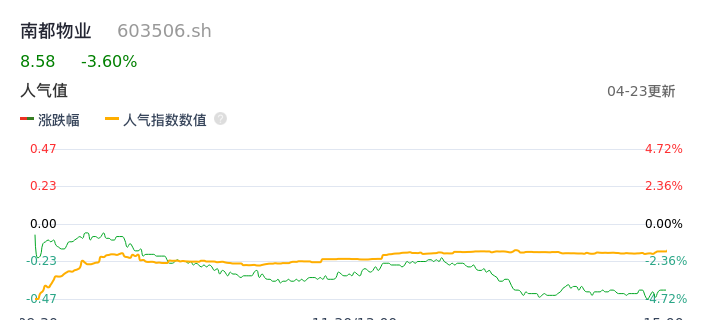 04月23日,南都物业收报8.58,股价涨幅-3.60%,成交金额7797.07万元,换手率4.80%。