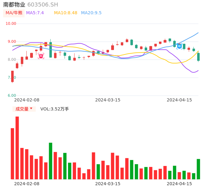 04月15日,南都物业收报7.94,股价涨幅-6.37%,成交金额2846.06万元,换手率1.87%。