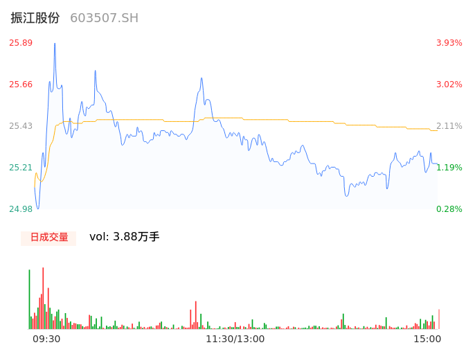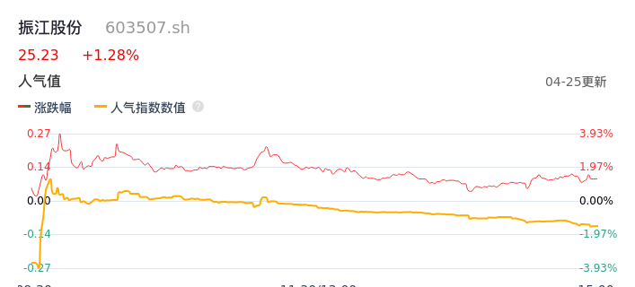 04月25日,振江股份收报25.23,股价涨幅1.28%,成交金额9860.57万元,换手率2.73%。