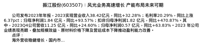 值得注意的是:2024年04月东北证券的韩金呈/刘俊奇分析师,首次发布关于振江股份的研究报告,标题为:振江股份(603507):风光业务高速增长 产能布局未来可期。