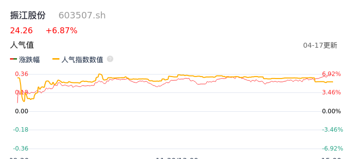 04月17日,振江股份收报24.26,股价涨幅6.87%,成交金额6957.37万元,换手率2.05%。