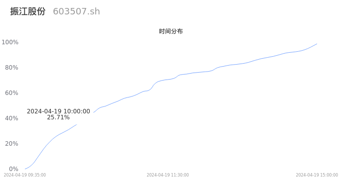 根据成交分布分析,该股票当天放量成交,成交清淡。时间上看,早盘前半小时成交量占据当天总成交量的25.71%;价格上看,成交呈现左偏峰。成交分布分析主要研究股票成交的分布特性,不具有预测功能,请知悉。