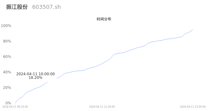 根据成交分布分析,该股票当天放量成交,成交清淡。时间上看,早盘前半小时成交量占据当天总成交量的18.2%;价格上看,成交呈现右偏峰。成交分布分析主要研究股票成交的分布特性,不具有预测功能,请知悉。
