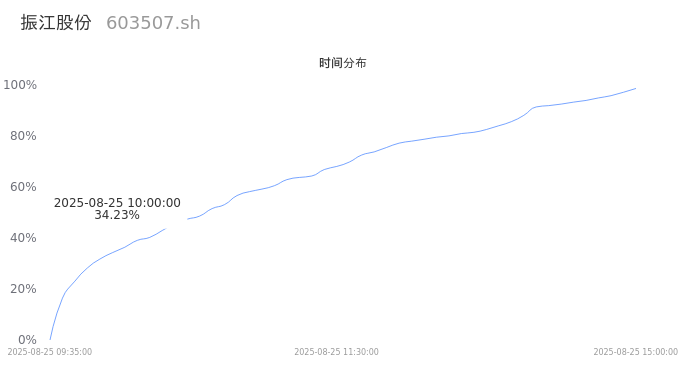 603507振江股份2025年08月25日成交15.66万手,成交金额4.55亿,相较昨日缩量8.30万手,换手率8.61%,成交清淡。