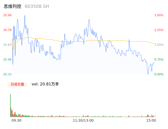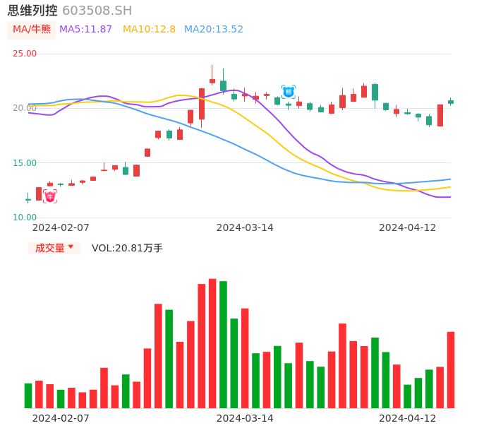 04月12日,思维列控收报20.45,股价涨幅0.59%,成交金额4.30亿元,换手率5.46%。