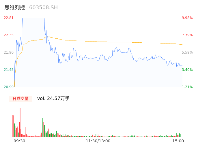 04月19日,思维列控收报21.57,股价涨幅4.00%,成交金额5.43亿元,换手率6.44%。