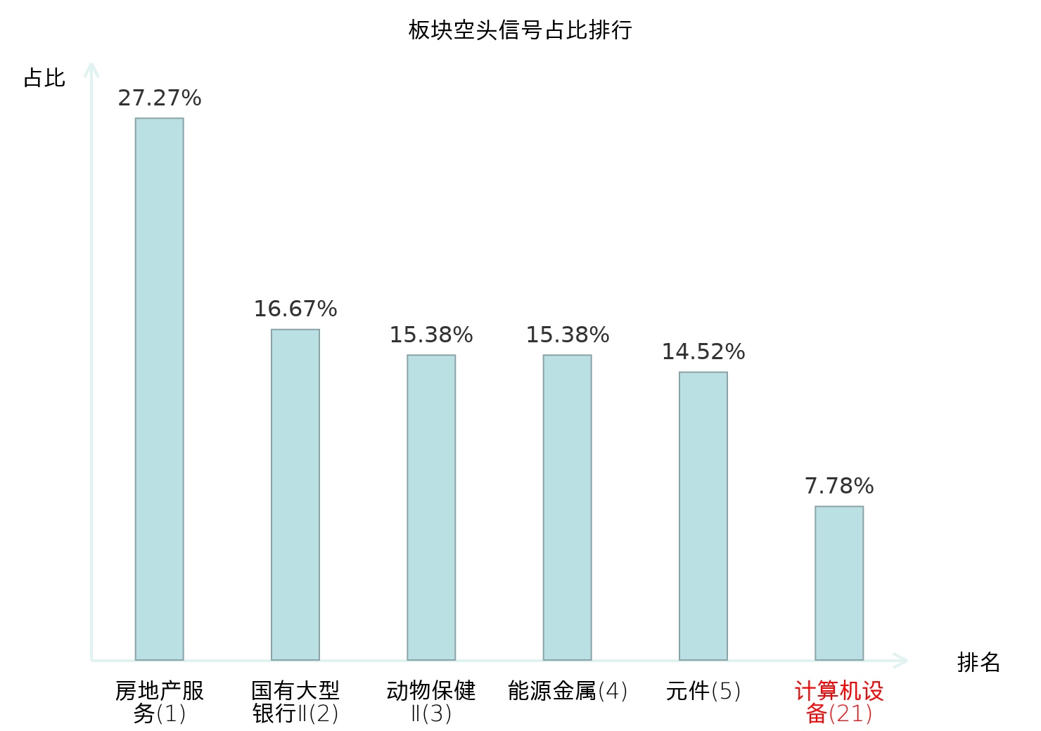 全市场所有行业板块中主力空头信号占比排名中,房地产服务板块位居第一。元件板块名次提升最快,较昨日上升122位。