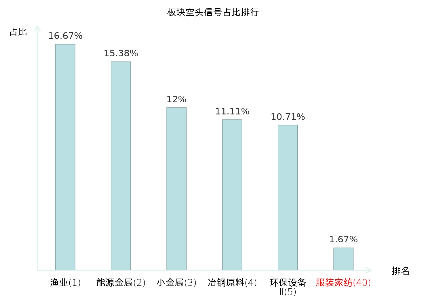 全市场所有行业板块中主力空头信号占比排名中,渔业板块位居第一。调味发酵品Ⅱ板块名次提升最快,较昨日上升106位。