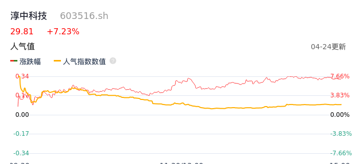 04月24日,淳中科技收报29.81,股价涨幅7.23%,成交金额4.28亿元,换手率7.25%。