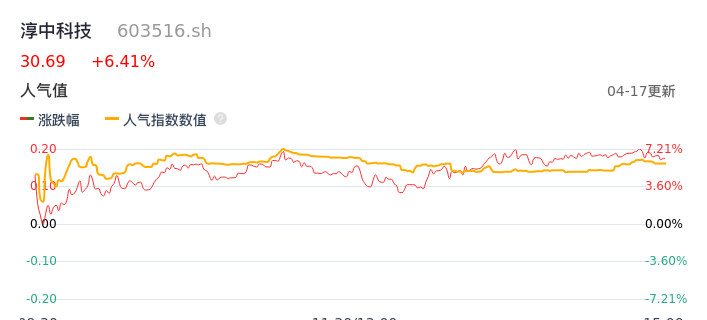 04月17日,淳中科技收报30.69,股价涨幅6.41%,成交金额4.52亿元,换手率7.43%。