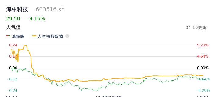 04月19日,淳中科技收报29.50,股价涨幅-4.16%,成交金额5.37亿元,换手率9.08%。