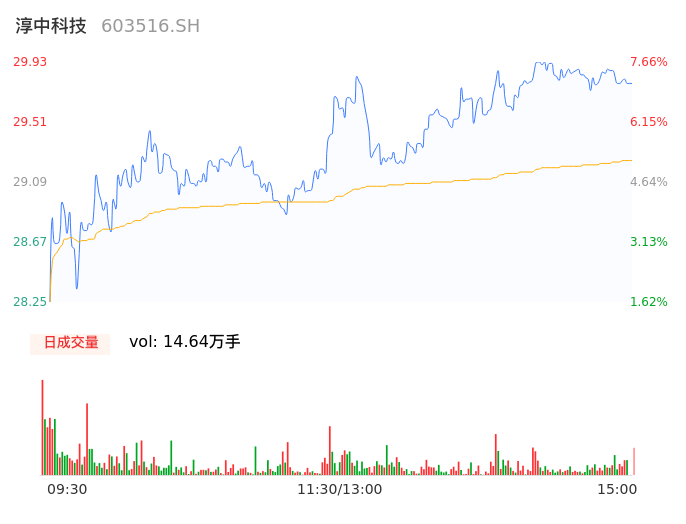 04月24日,淳中科技收报29.81,股价涨幅7.23%,成交金额4.28亿元,换手率7.25%。