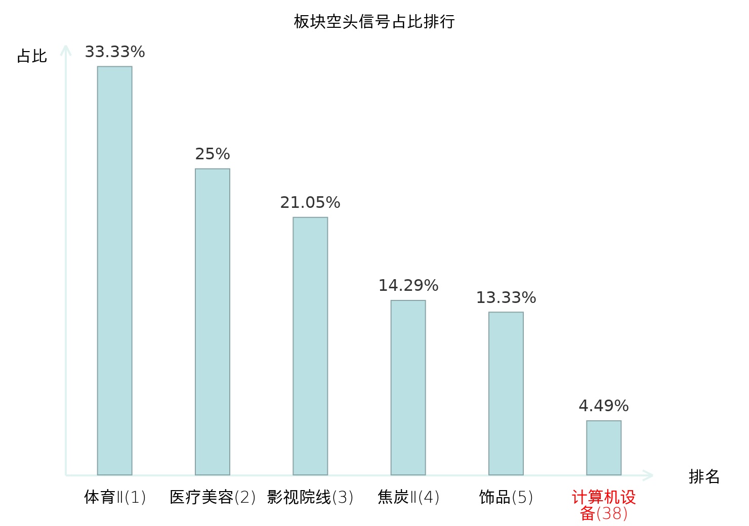全市场所有行业板块中主力空头信号占比排名中,体育Ⅱ板块位居第一。金属新材料板块名次提升最快,较昨日上升112位。