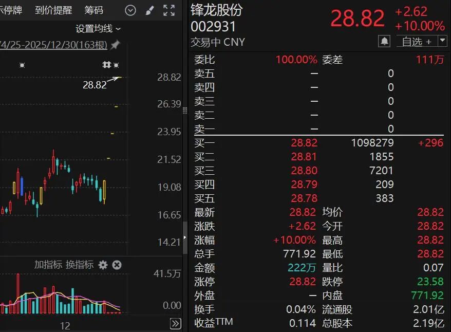 12月28日,锋龙股份披露股票交易异常波动公告,再次强调优必选三年内不会借壳上市。此前,优必选发布公告,宣布拟以“协议转让+要约收购”的组合方式,以总计约16.65亿元的对价收购锋龙股份约43%的股份。本次交易完成后,优必选将成为锋龙股份控股股东。