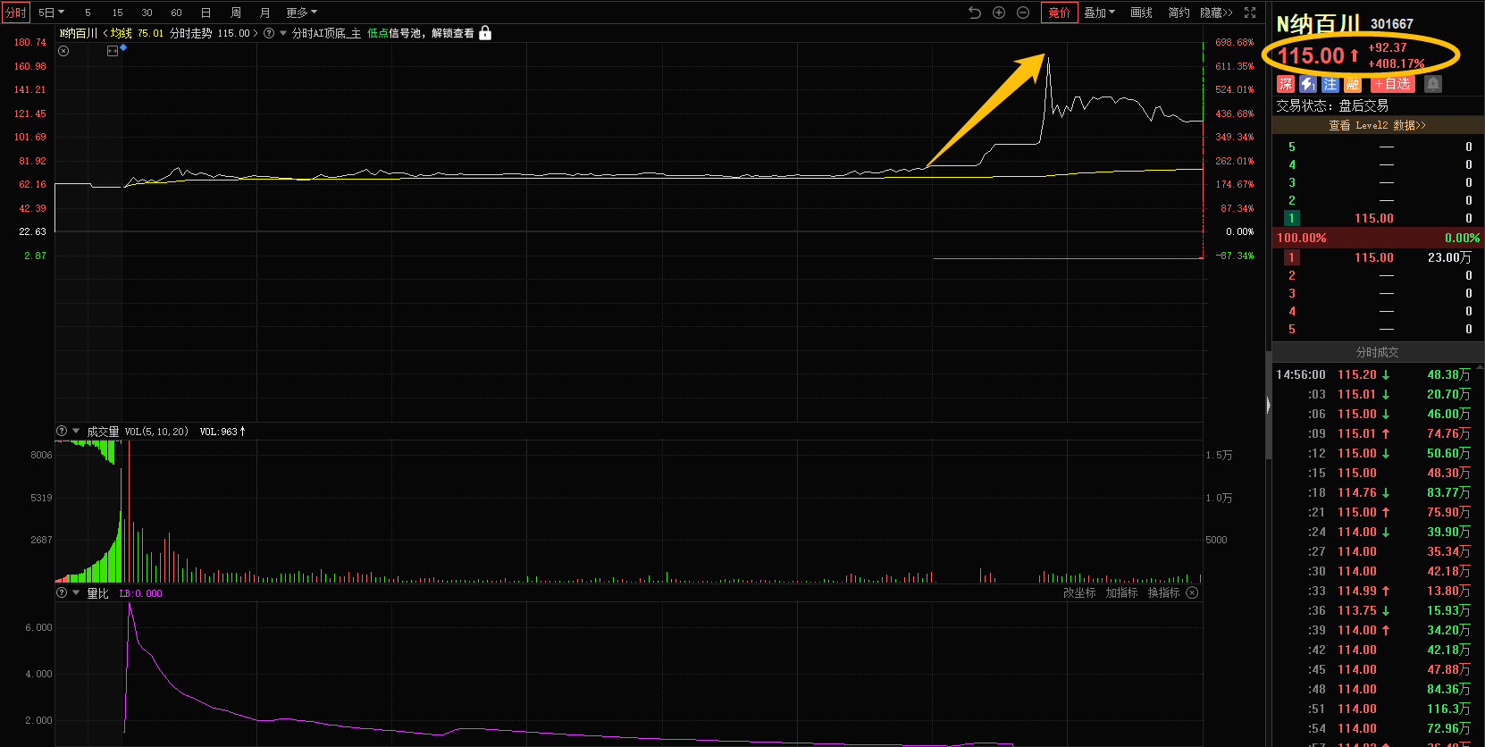 今天一口气上了3只新股,下午N锡华和N天溯计量一度在N纳百川的带动下,均涨超3倍,截止收盘也都明显的高于中午的收盘价。N纳百川盘中一度涨近7倍,在它的影响下,今天新能源、液冷方向皆有上涨,因为纳百川是做的电池液冷板、储能电池、汽车热管理这块的。上午涨新能源(锂电设备,锂电资源),下午能出现明显的液冷方向的拉升。中午我们还在说飞龙股份、英维克这波5日线趋势攀升,下午一开盘液冷的川润股份就出现明显的大单异动,1点06分就封板,最高17亿的封单资金,随后英维克、奕东电子、申菱环境、飞龙股份、淳中科技、大元泵业这些前期热门的液冷概念股均出现不同程度的拉升,大元泵业更是一度触及涨停。液冷板块,今天多股涨停3只20厘米涨停的,4只10厘米涨停的个股,板块指数这几天也是连续的堆量新高,今天情绪这么强的情况下,大概率明天还会有冲高的表现,但是能否有强化,就看竞价这边今天涨停的个股明天有没有大单顶一字板的带情绪了。液冷这波是16号异动的,我们17号就提示大家这个题材和指数共振,随后好多的个股走一波不错的涨幅,反观老主线商业航天,个股基本高位,难涨易跌,亏钱效应远大于赚钱效应这几天的表现。