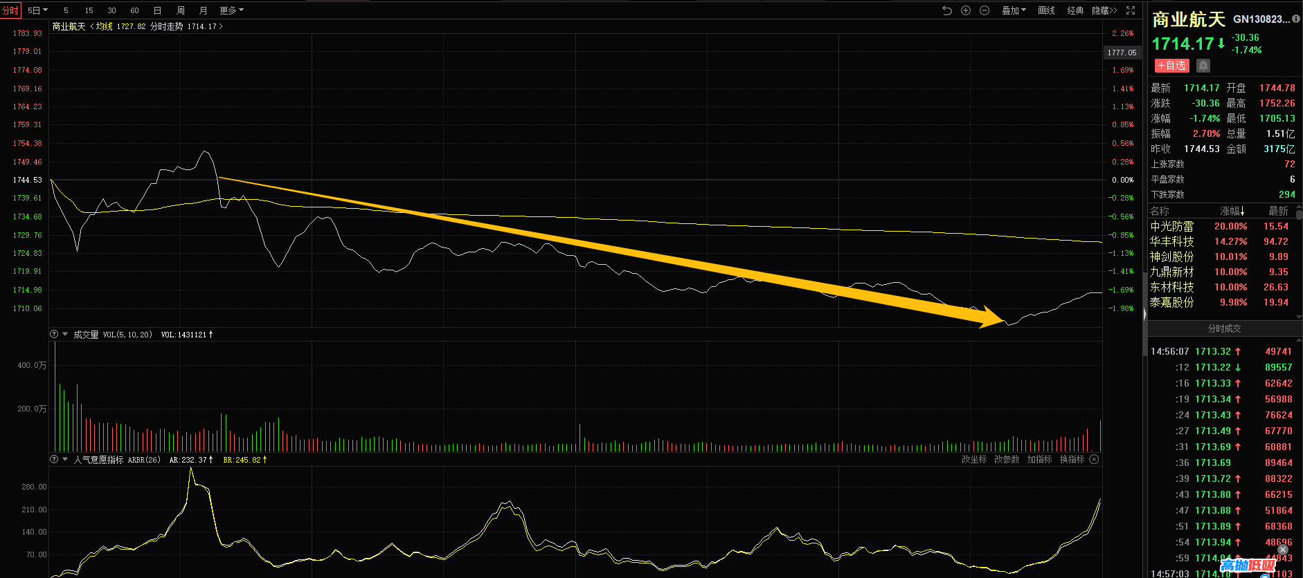 商业航天今天最高跌了2个多点。跌超7%的有将近20只,占了全天的3分1。也是今天亏钱效应最强的一个题材,甚至超过昨天量化平铺今天冲高回来的海南板块。顺灏股份跌停、中国卫通、通宇通讯盘中一度触及跌停,天银机电、久之洋、再升科技、航天电子、银河电子基本都是大跌的,商业航天这段走的亏钱效应大于赚钱效应的很大原因是因为市场的题材轮动机会多了起来,不再聚焦了,资金分流明显,而新的题材套牢盘少,也不那么卷,因此对于商业航天来说,在主升阶段和震荡退潮的阶段,大家的策略要变通,不要拿主升的思路来操作退潮调整的行情段,不然涨指数不赚个股也是常有的事。